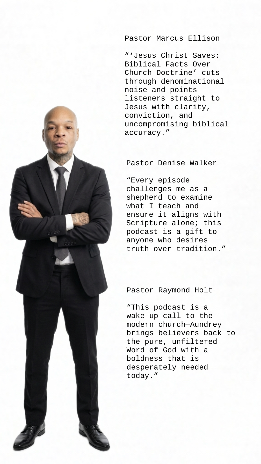 Aundrey’s life is living proof that God restores what was broken, heals what was wounded, and transforms pain into purpose. His mission is clear: to illuminate the undeniable reality of Jesus Christ and to help others discover the hope, identity, and renewal found in Him.