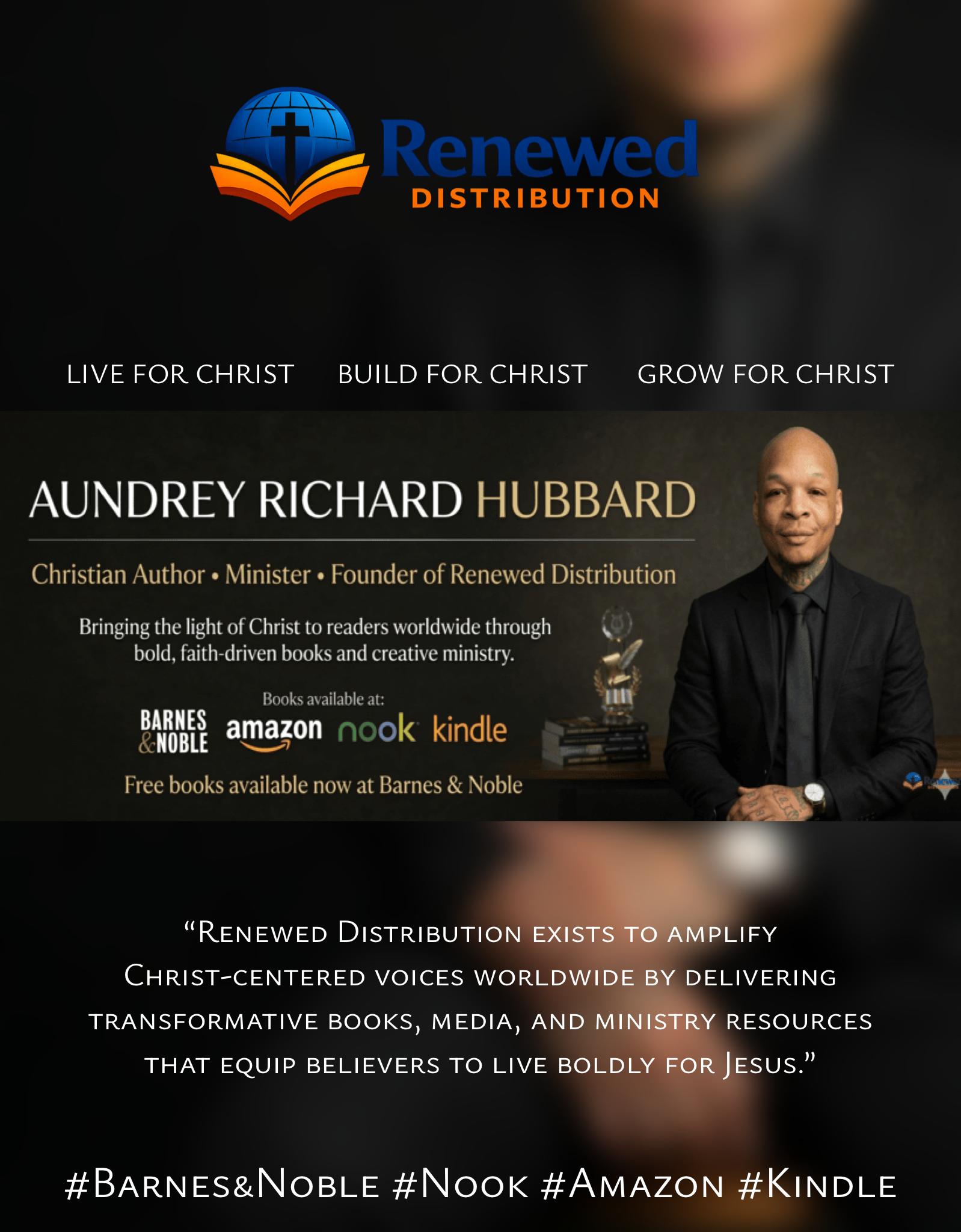 Driven by a global vision, Aundrey founded Renewed Distribution, a Christ‑centered distribution company dedicated to delivering transformative Christian books and media to nations around the world. Through this ministry‑driven platform, he partners with authors, ministries, and publishers to expand access to biblical truth—especially in underserved regions. Renewed Distribution reflects his lifelong conviction that the gospel is not just a message to believe, but a mission to carry.